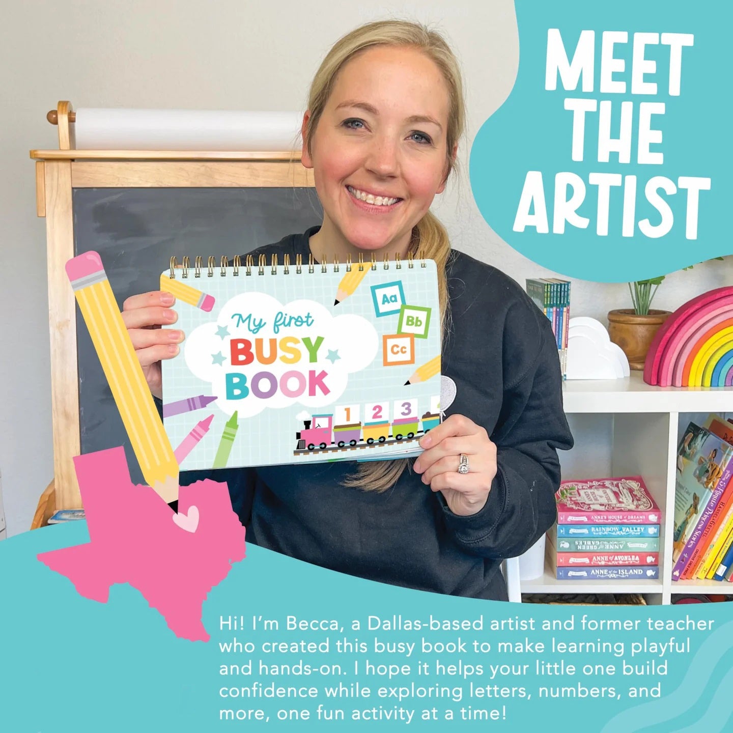 Our Busy Book helps toddlers learn colors, letters, numbers, shapes, emotions, and more — all through interactive hands-on fun.