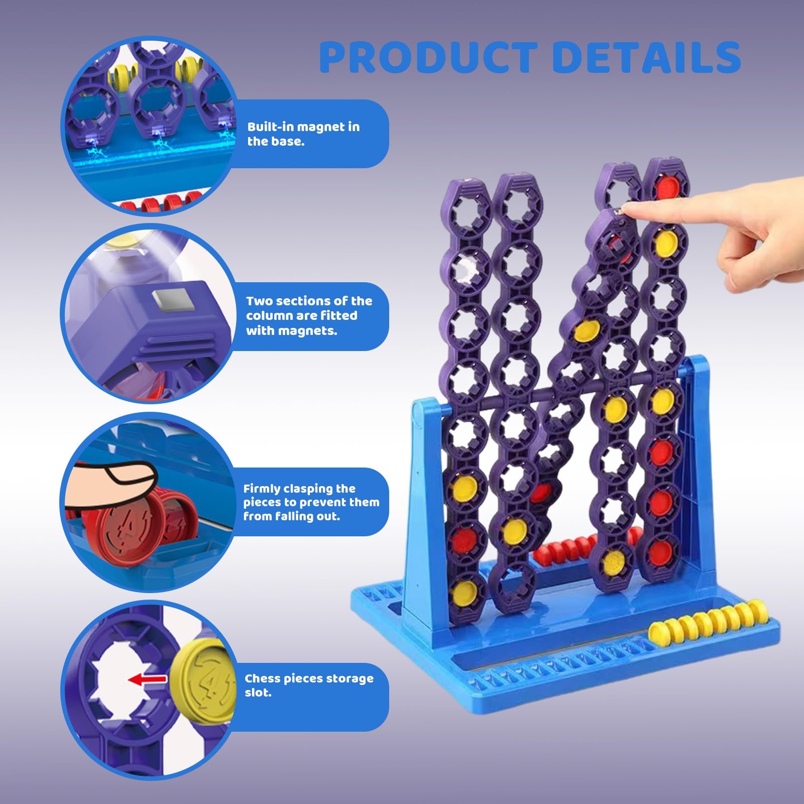 Comes with 40 durable discs (19 red, 19 yellow, plus 2 weighted pieces) for endless rounds of exciting competition. this game board measures 12.4 x 9.1 x 7.5 inches — ideal for tabletops or travel play.