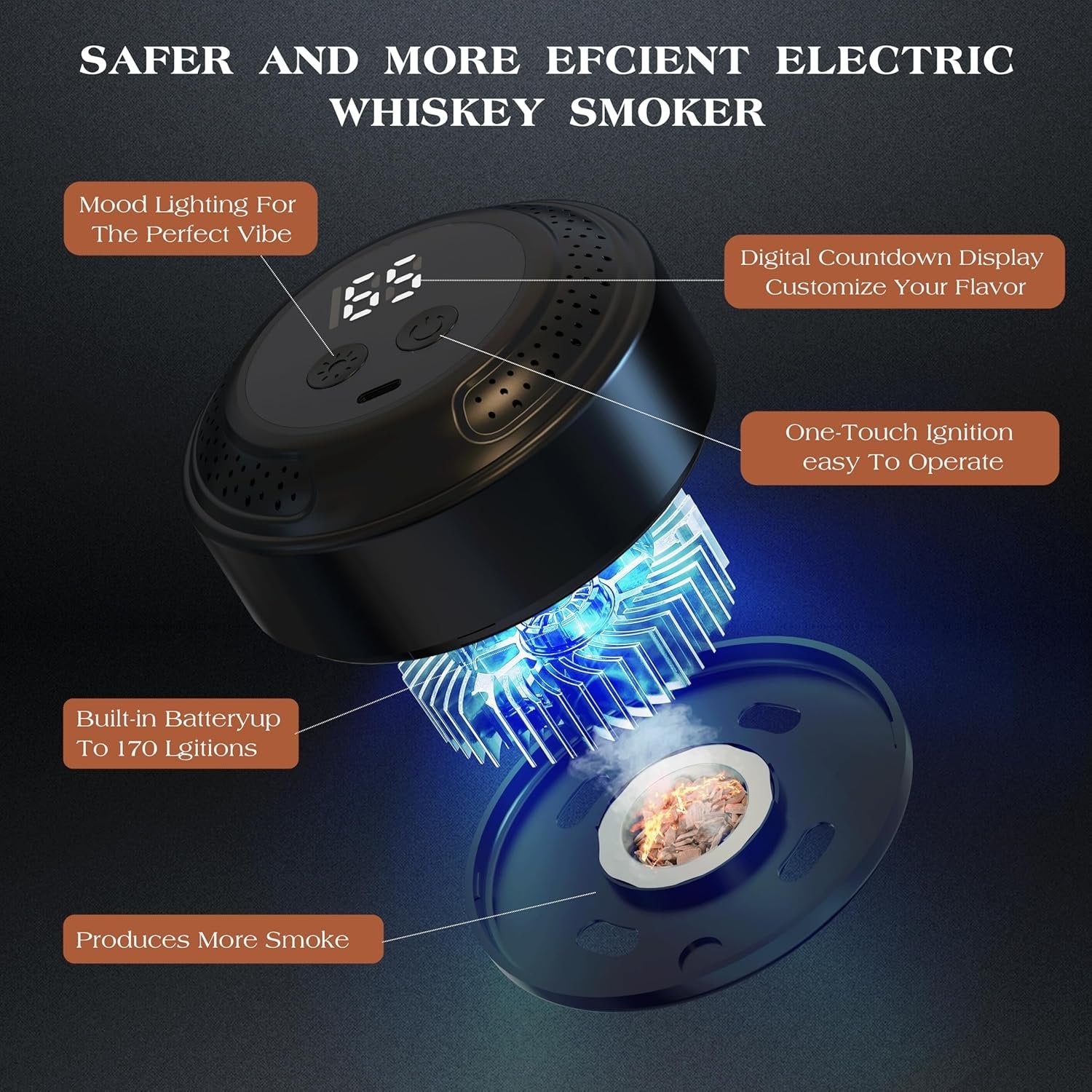 🔥Hot Sale 49% off🌟2025 New Electric Whiskey Smoker Kit with 6 Wood Chips