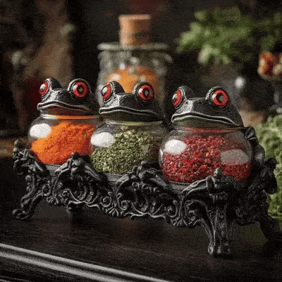 🐸✨ Add a dash of magic to your kitchen. Let these gothic frog guardians watch over your herbs, teas, and potions.