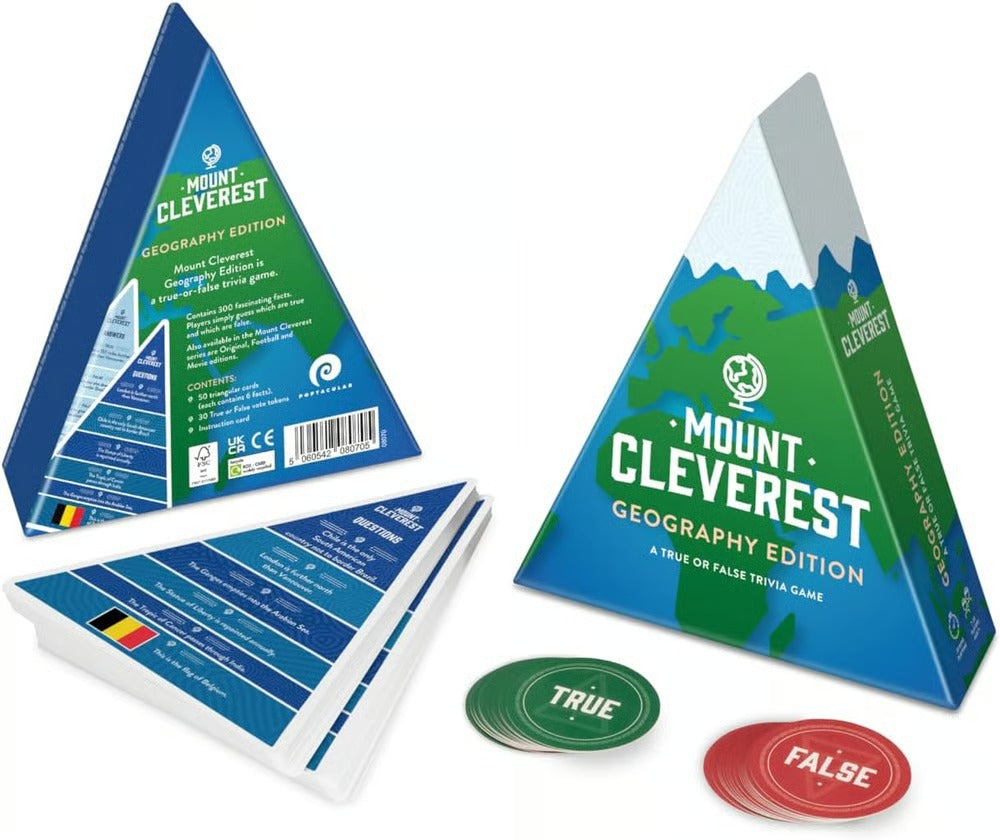 ✅ 400 Carefully Selected Questions - Covering easy and challenging topics, suitable for all ages. Contains 50 big triangular cards AND thirty discs to bet whether the answer is TRUE or FALSE (lose a token if you get it wrong!).